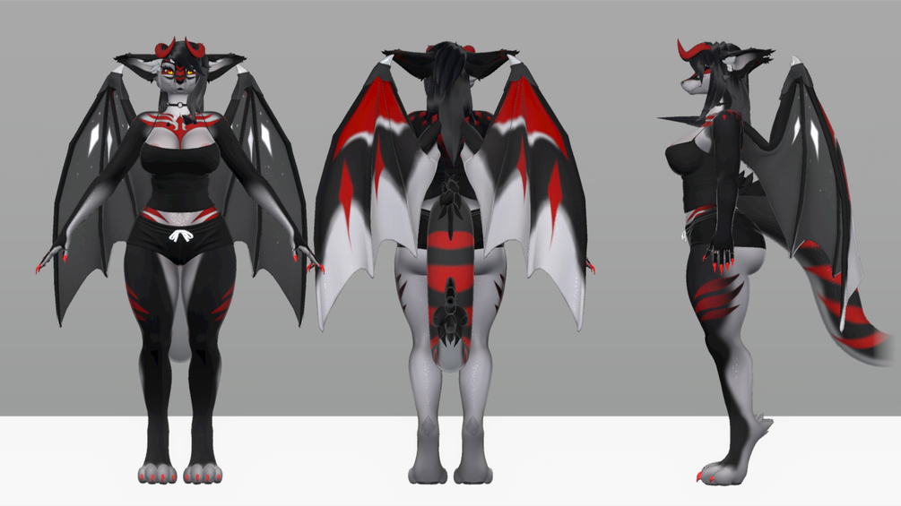 Textures of the Fatalis for Foxipaw's Celeste avatar - Body, tail 1, tail 2, eyes, horns and wing colors with optional emission masks and a readme for additional info if needed