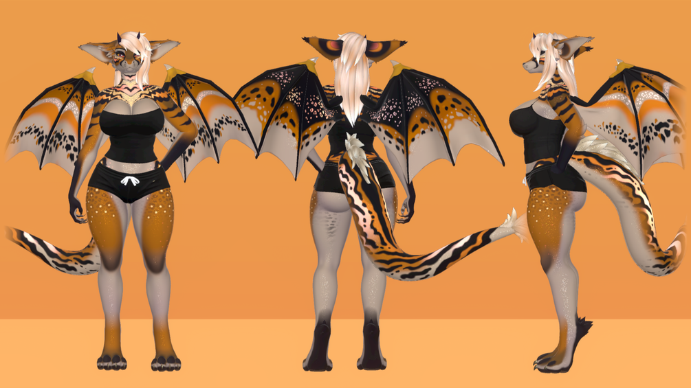 TEXTURES ONLY - 1 tail base color, tail metallic, tail normal, body base color, body emission, body metallic, body normal, body roughness, eye base color, eye emission, hair color, horn base color, horn height, horn metallic, horn AO, horn normal/Open GL, horn roughness, tail emission, wing emission, wing base color and 1 readme